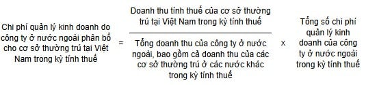- Phần chi phí quản lý kinh doanh do doanh nghiệp nước ngoài phân bổ cho cơ sở thường trú tại Việt Nam vượt mức tính theo công thức sau: